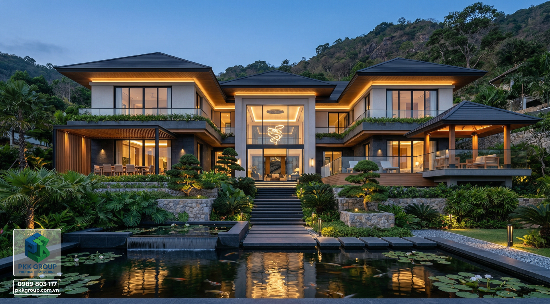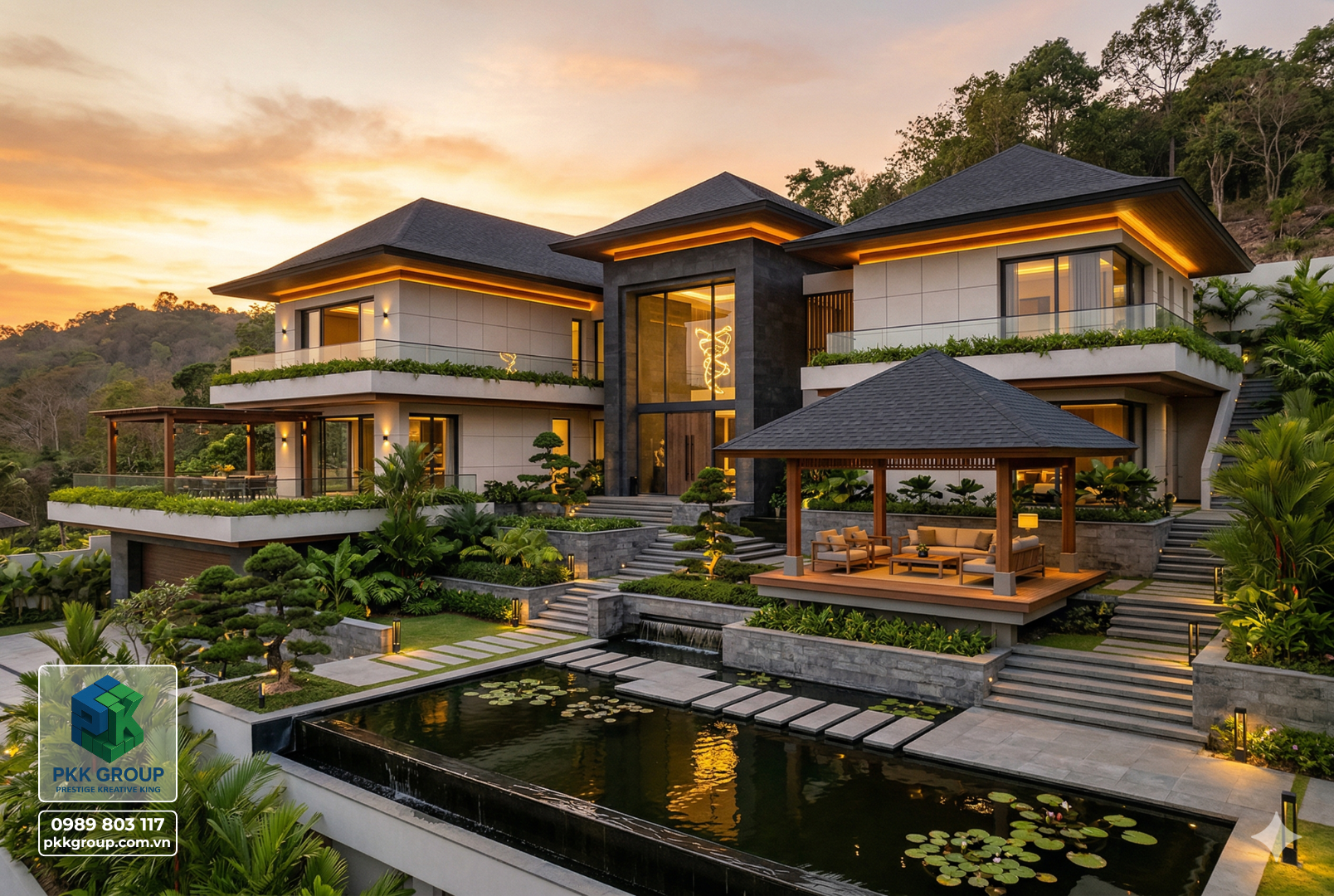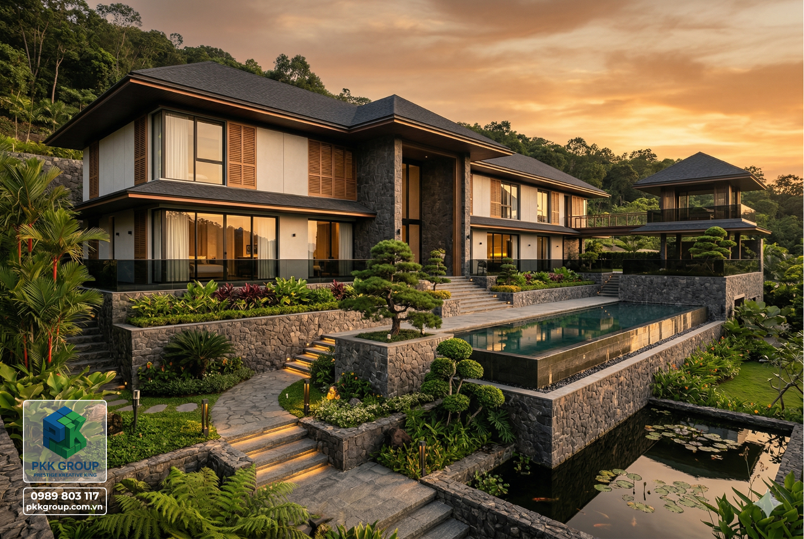 Bộ phối cảnh này là concept Biệt thự nghỉ dưỡng sườn đồi 2 tầng do PKK GROUP phát triển theo hướng: đẹp để tận hưởng – bền để ở lâu dài – và đủ khác biệt để tăng giá trị bất động sản theo thời gian.