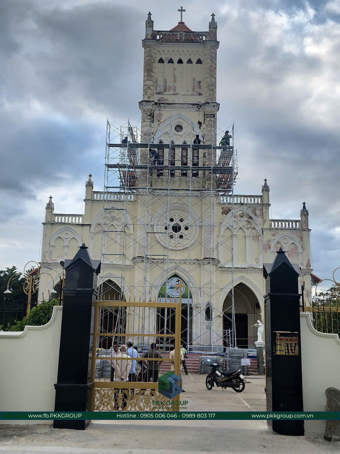 PKK Group đảm bảo lớp sơn mới bền, mịn và giữ được sắc thái đặc trưng của nhà thờ.