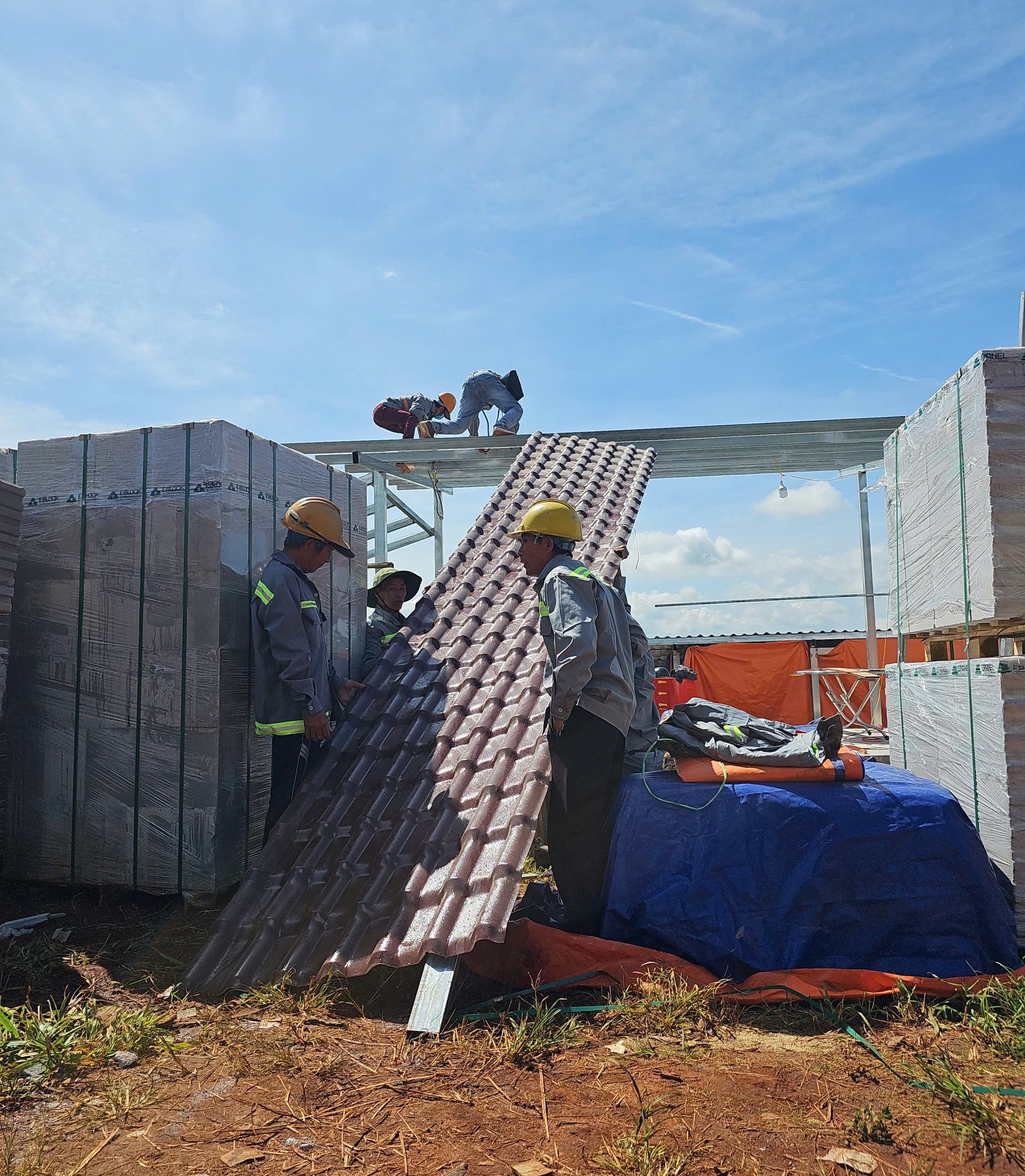 Quy trình nâng, đặt tấm lợp mái, panel… được thực hiện bài bản, có người hướng dẫn – cảnh giới.