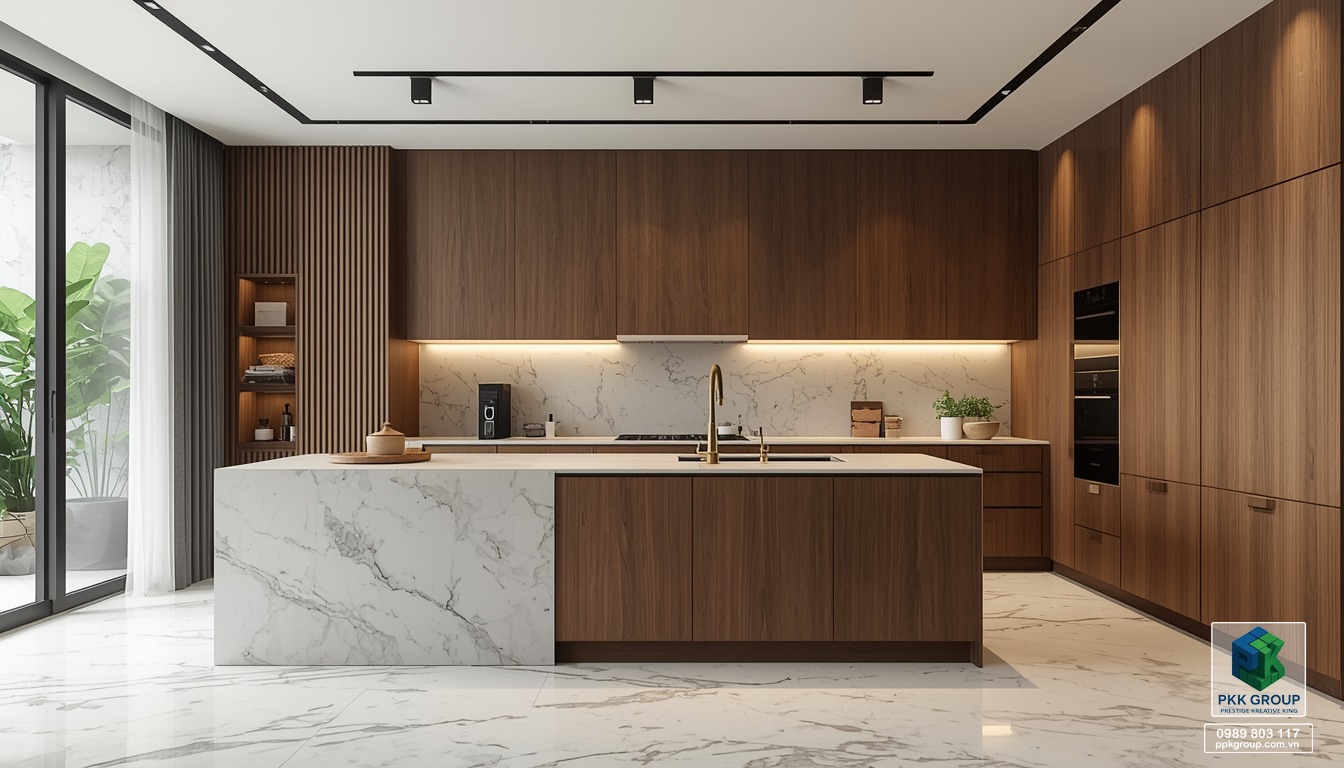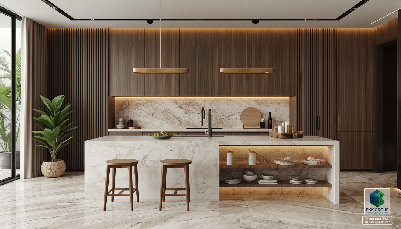 Trong xu hướng thiết kế hiện nay, phong cách nội thất hiện đại kết hợp vật liệu cao cấp đang trở thành lựa chọn được nhiều gia đình yêu thích. Với sự hài hòa giữa đá vân tự nhiên, gỗ ấm áp và hệ ánh sáng tinh tế, không gian sống trở nên sang trọng nhưng vẫn giữ được cảm giác gần gũi và thư giãn.