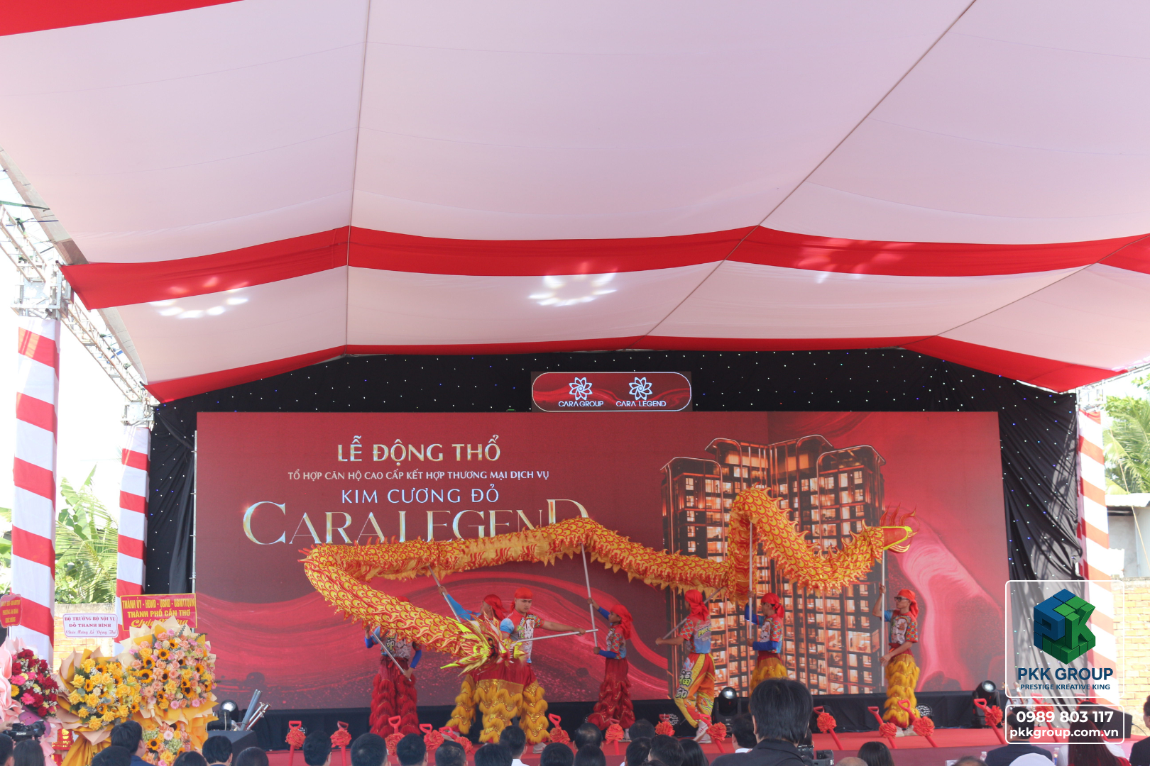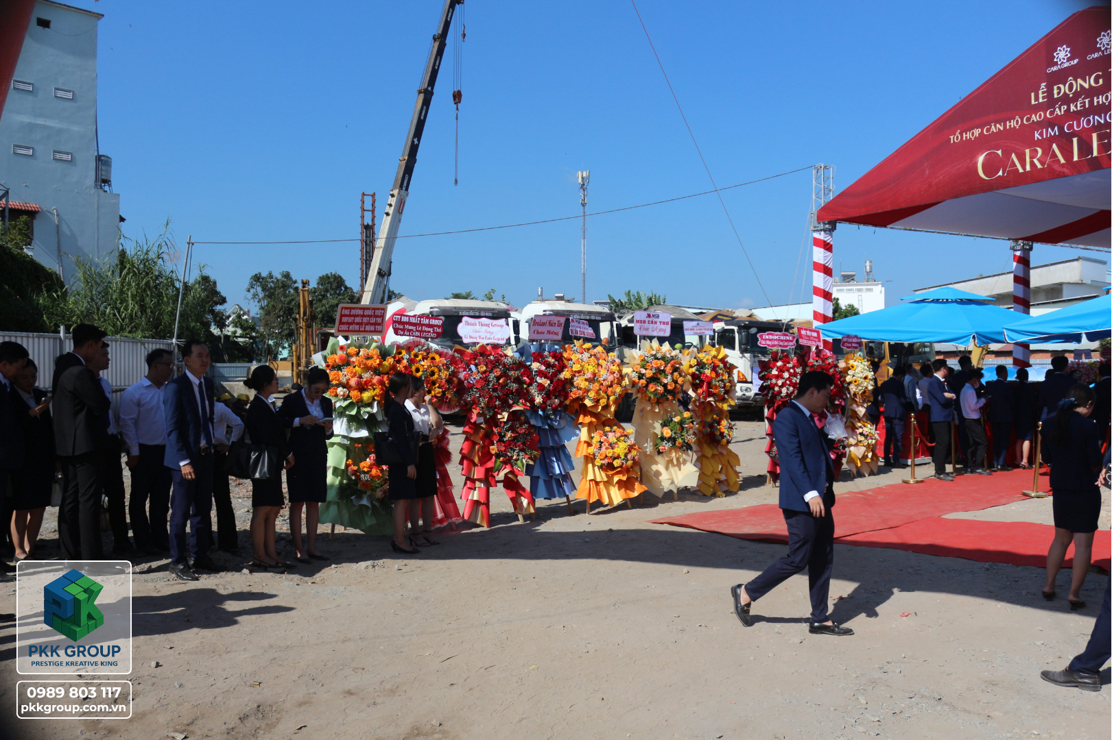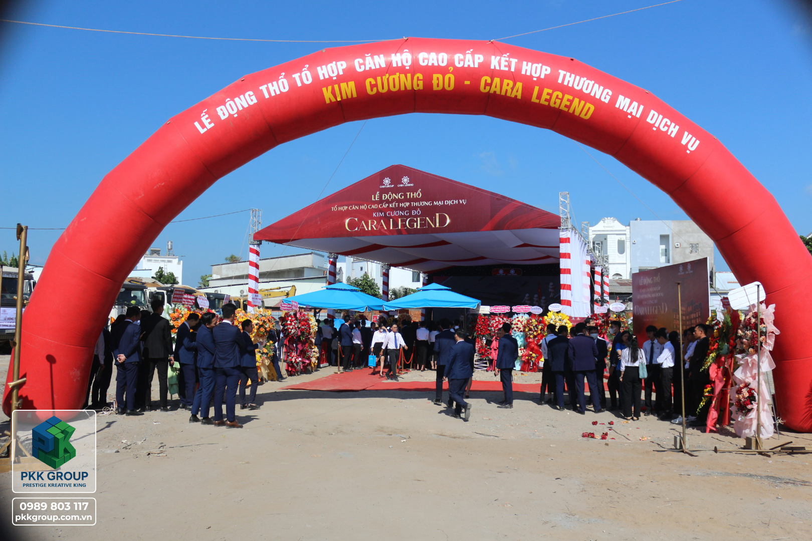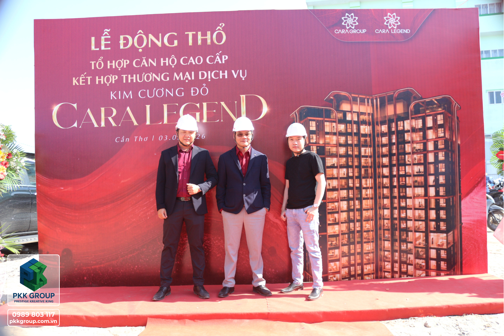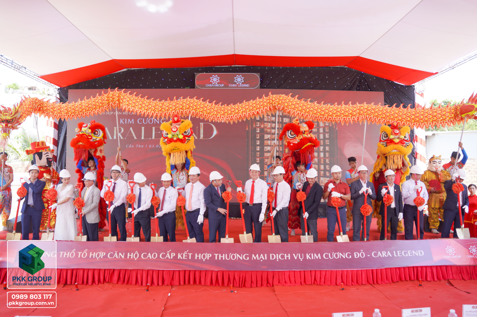 Buổi lễ động thổ được tổ chức long trọng với sự tham gia của các đối tác, khách hàng, và các chuyên gia trong ngành. Dự án CARA LEGEND là một tổ hợp căn hộ cao cấp kết hợp thương mại dịch vụ với kim cương đổ – biểu tượng của sự sang trọng và bền vững. Buổi lễ không chỉ đánh dấu bước tiến mới trong việc xây dựng những công trình đẳng cấp mà còn khẳng định cam kết của PKK Group trong việc tạo dựng những giá trị vượt trội cho cộng đồng.