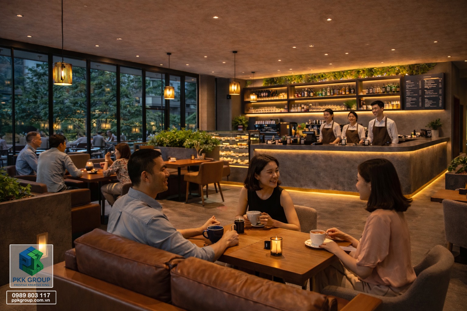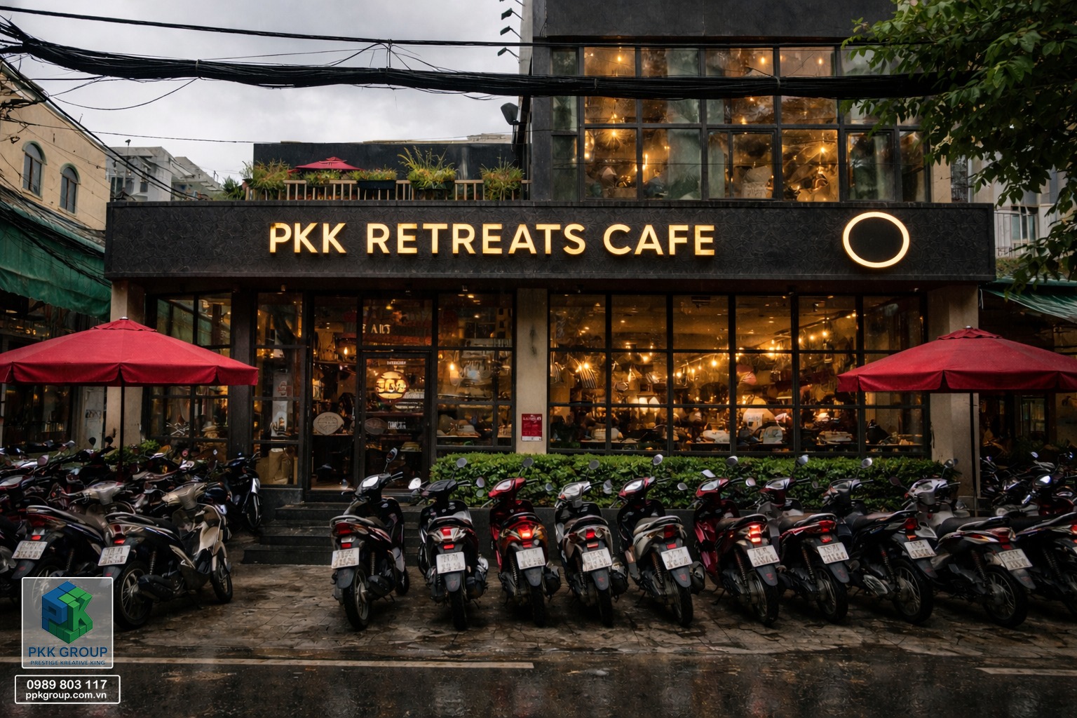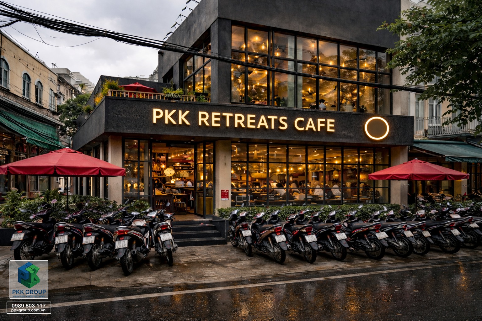 Concept quán cafe do PKK Group phát triển hướng đến phong cách hiện đại, sang trọng và gần gũi thiên nhiên, mang lại trải nghiệm trọn vẹn cho khách hàng ngay từ khi bước vào.